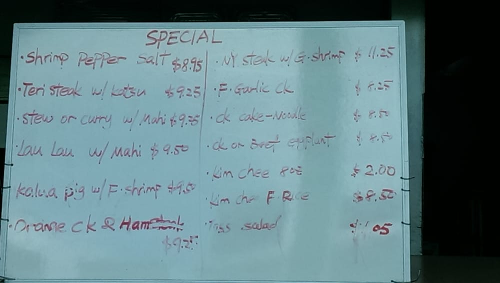 Key highlights include the BBQ Chicken Plate Lunch and Hamburger Steak Plate Lunch, both available at an unbeatable price of $6.75. These hearty portions are a testament to the restaurant's commitment to quality and flavor. Additionally, the Broccoli with Chicken and Broccoli with Shrimp stir-fried dishes make for satisfying choices, especially for health-conscious diners.